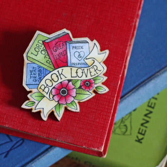 Brooch / Pin / Badge - Book Lover Tattoo - Wooden