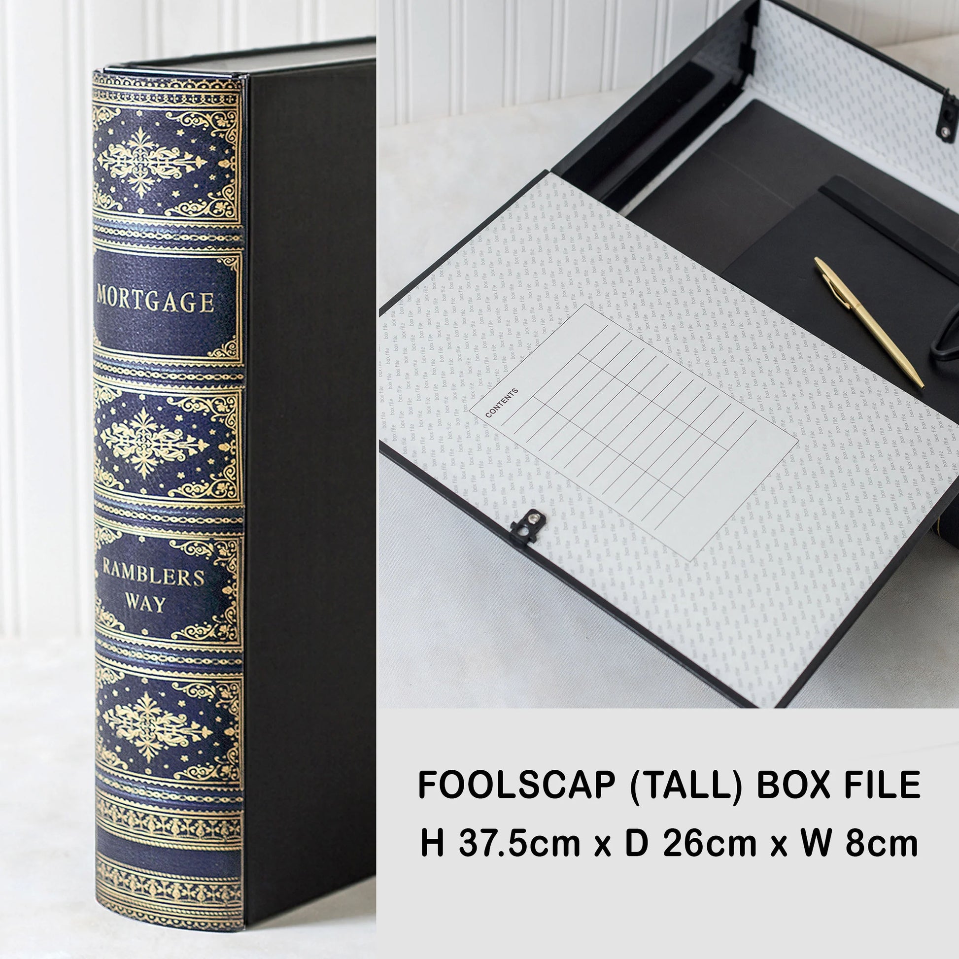- Choose between foolscap file or box file